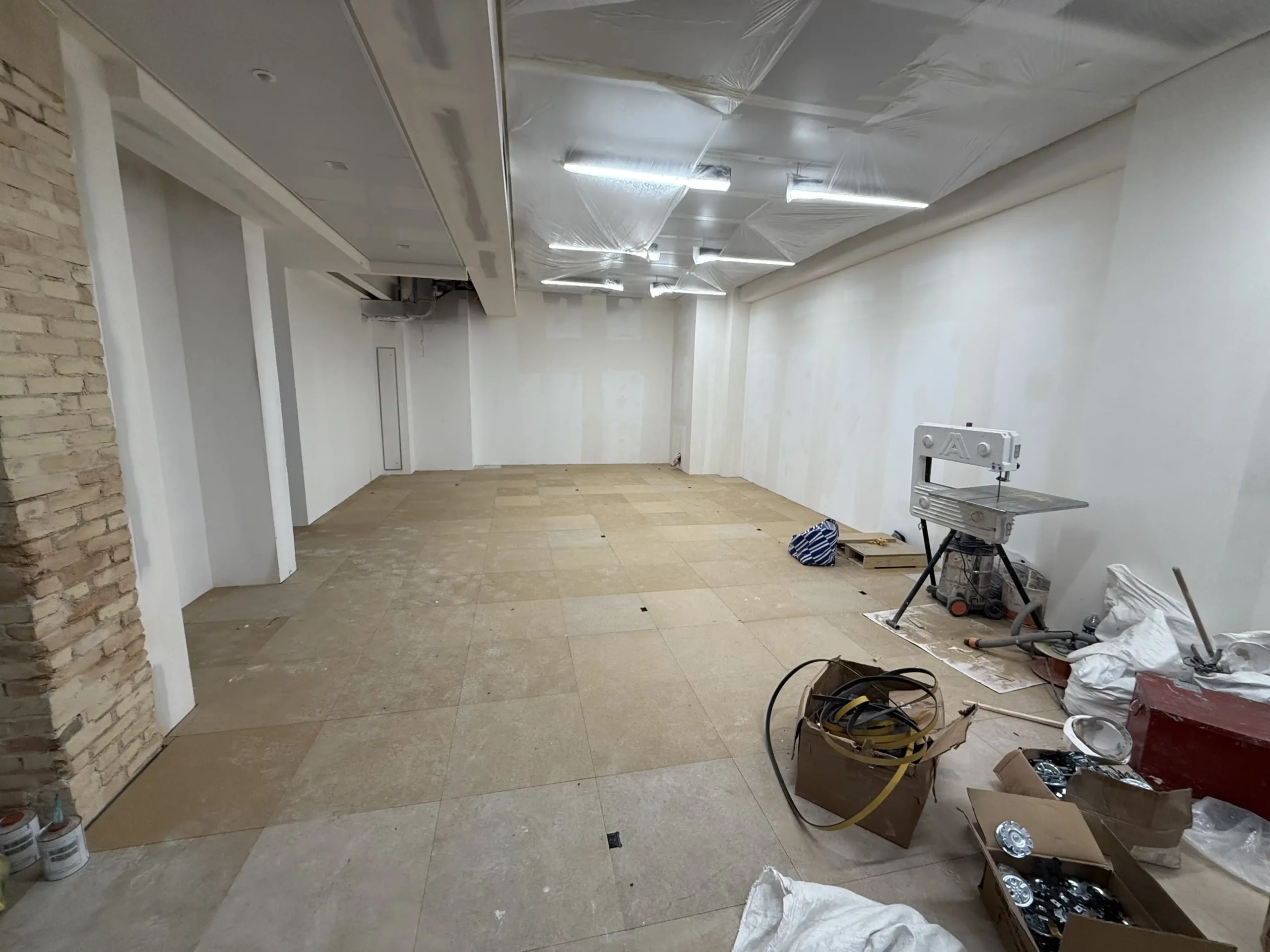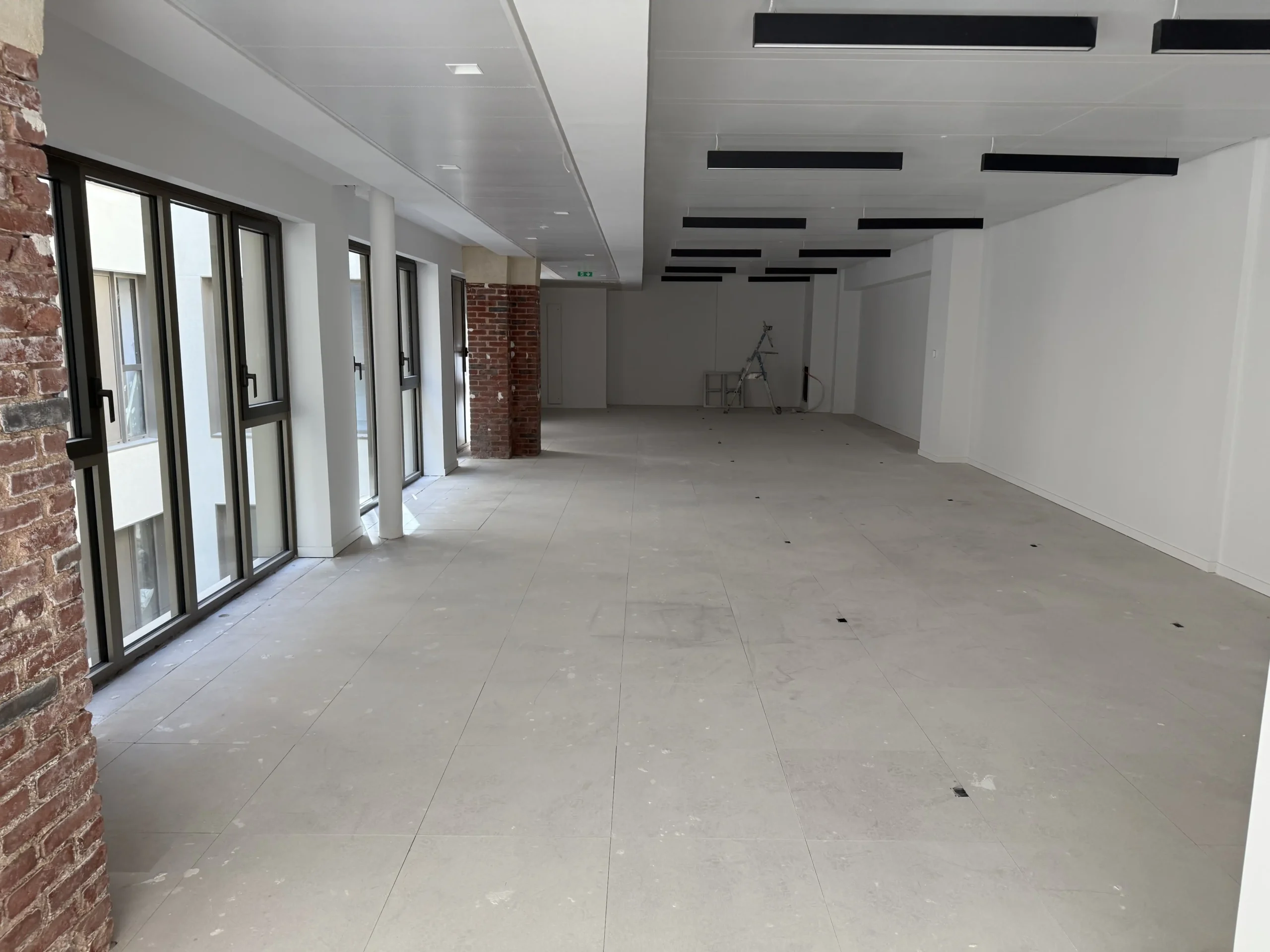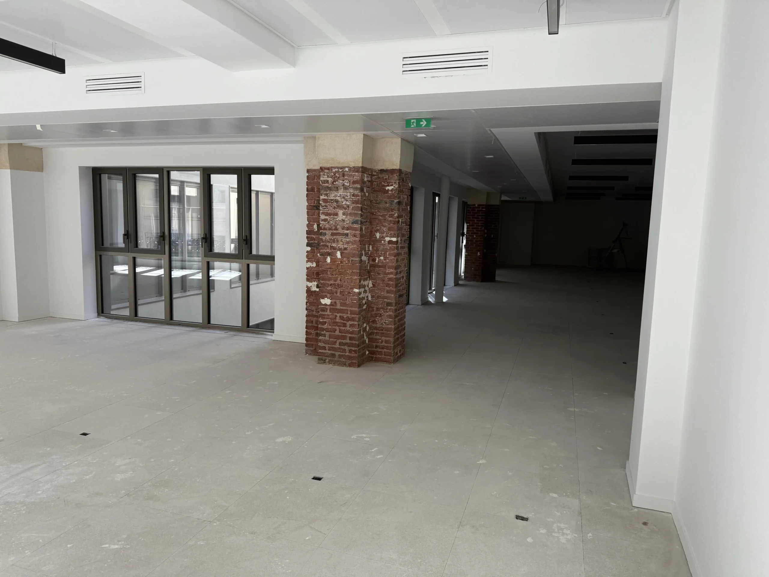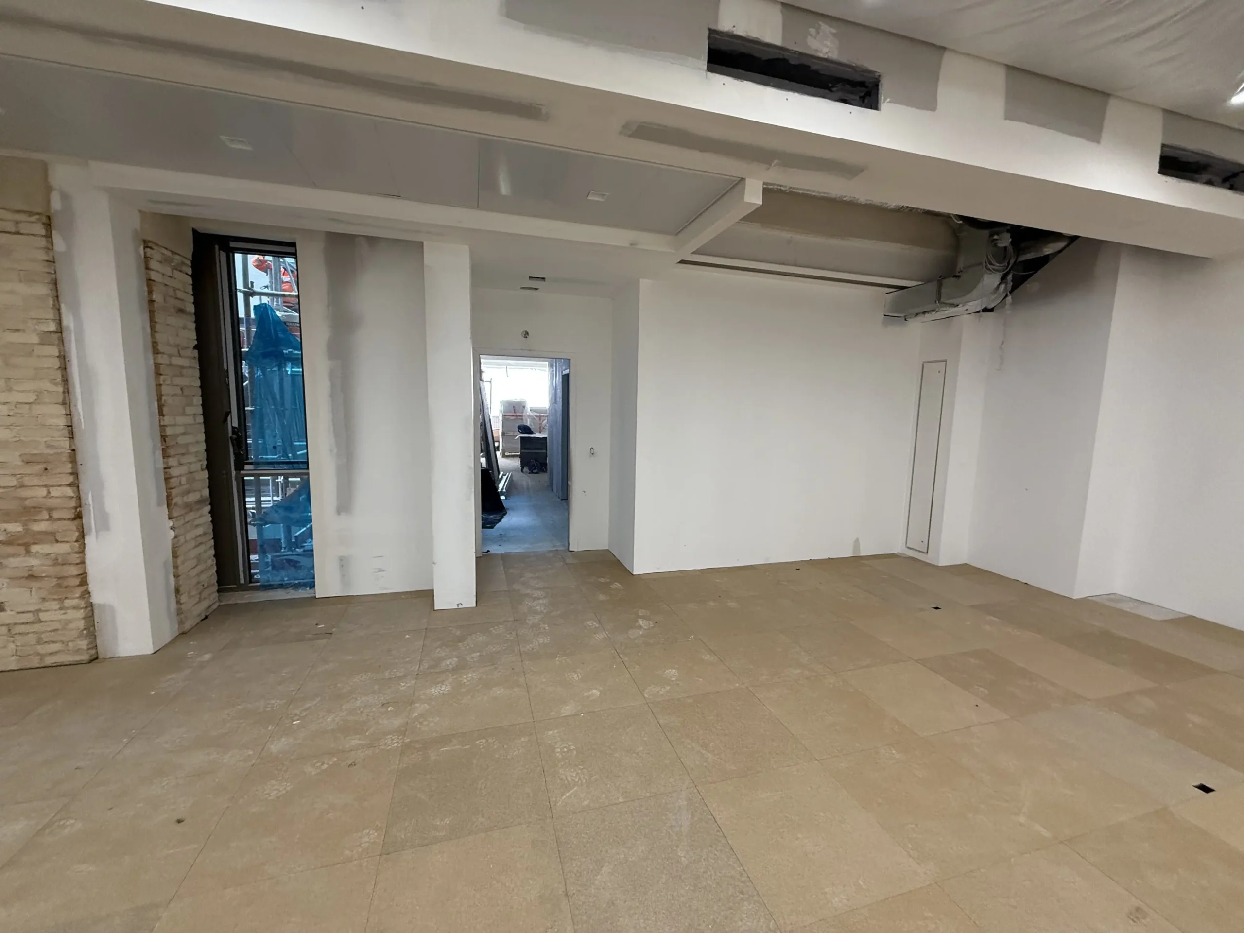 Chantier de plancher technique neuf en dalles agglomérées Burobox, posé sur un plénum de 60 à 80mm.